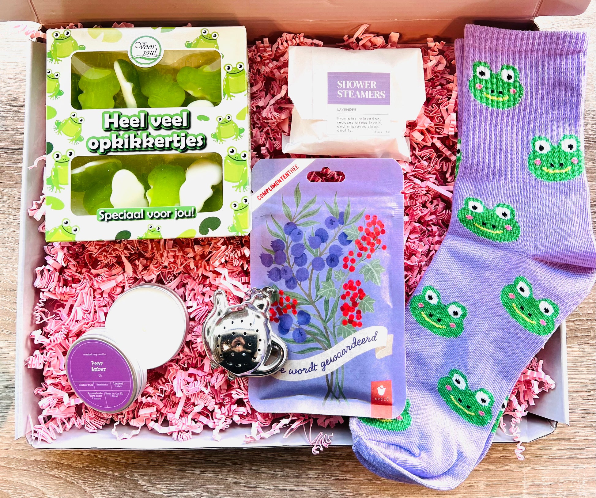 Een warme en luxe attentie om iemand sterkte en een spoedig herstel te wensen. Deze box brengt comfort, positiviteit en ontspanning – precies wat nodig is in een moeilijke periode.
