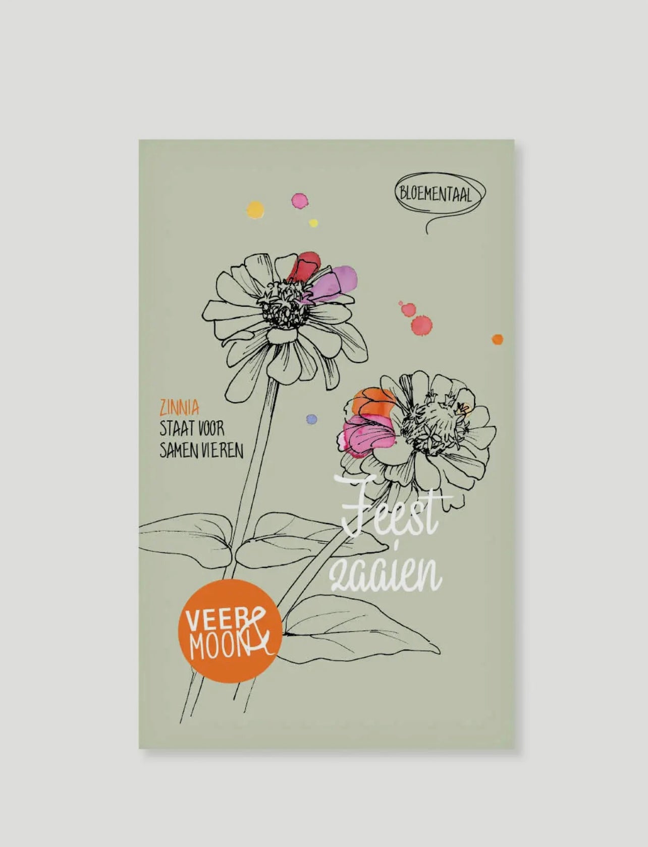 Een vrolijk en feestelijke bloemenweelde krijg je met de Zinnia. Deze bloem staat voor 'samen vieren'. Bij het zien van de kleurige bloemen krijg je gelijk een feestgevoel. Heeft er iemand iets te vieren? Stuur dan het zadenzakje feest zaaien.