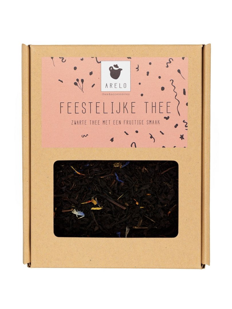 Hangen de slingers en staan de confetti kanonnen al klaar? Maak het feest compleet met deze feestelijke thee. Een zwarte thee met een fruitige aardbei en abrikozen smaak voor bij het verjaardags- moederdag- of willekeurig ander feestelijk ontbijt. De thee alleen is al een feestje om te zien!