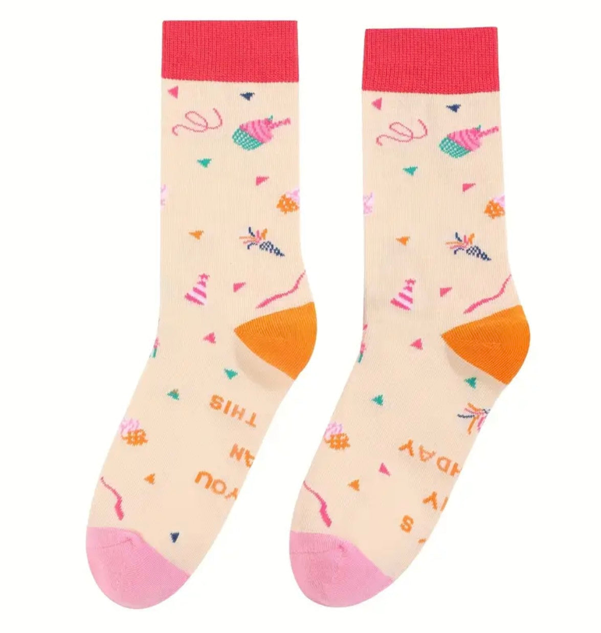 - Birthday sokken (maat 37–42), vrolijk en comfortabel