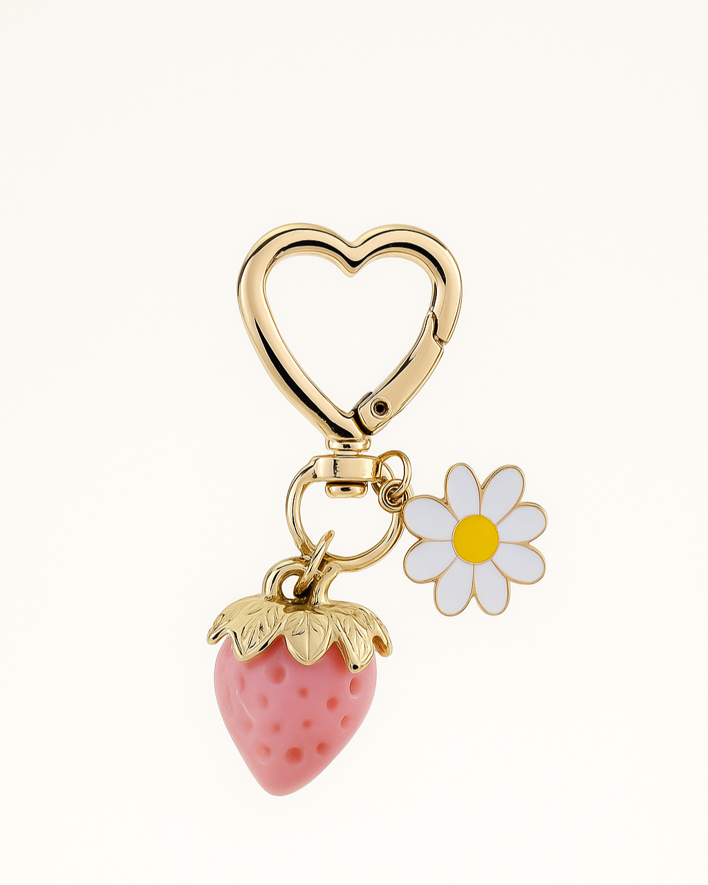 - Schattige aardbei sleutelhanger – een vrolijk detail dat altijd bij je blijft.