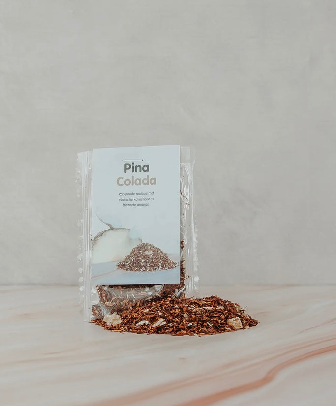 Rooibos met exotische kokosnoot en fris zoete ananas. Laat je verassen door deze exotische cocktail. De zoete kokosnootschilfers en fris zoete ananas blokjes doen denken aan witte stranden en steak blauwe luchten