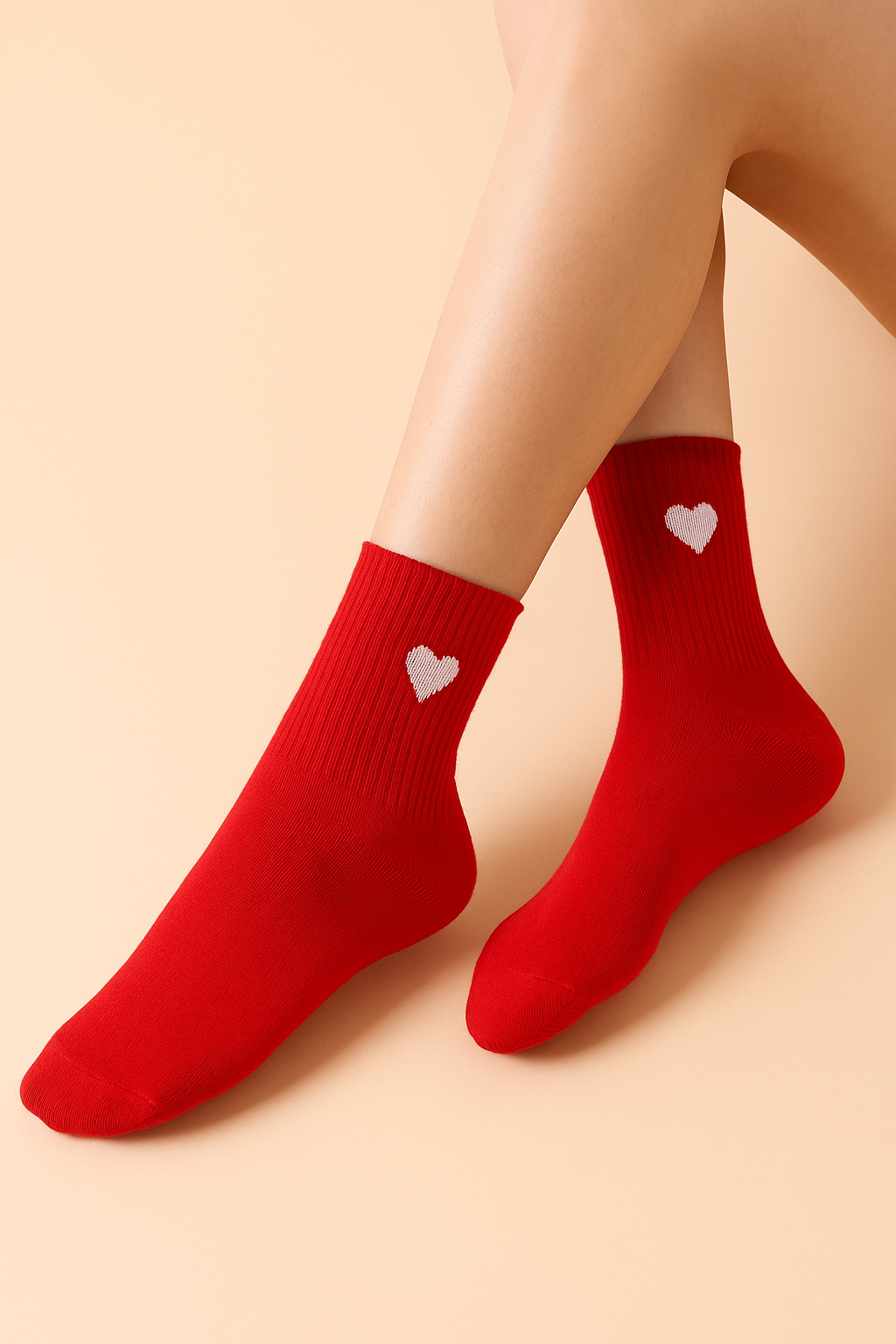 Deze opvallende rode sokken met een subtiel wit hartje zijn de perfecte mix van comfort en stijl. Gemaakt van heerlijk zacht materiaal en voorzien van een stevige ribstructuur voor een fijne pasvorm. Ideaal om je outfit een speelse touch te geven of gewoon om jezelf wat extra liefde te gunnen.